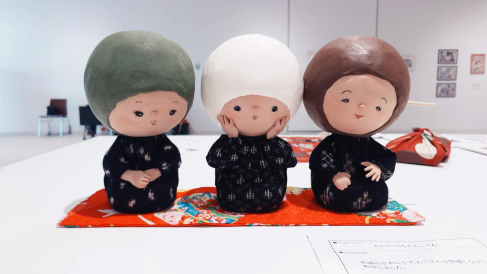 審査結果ですが、グランプリを受賞した『おしゃべりなだんごさん』は、打吹公園だんごのイメージから和⾵でキュートな三姉妹を⽣み出したことによって、公園だんごの新たなキャラクターを登場させたこと、これにより今後さまざまなデザイン展開が期待できる点が⾼く評価され、⽂句なしの受賞となりました。また、会場とInstagramで実施した⼀般投票でも1位となるなど、コンテスト審査員だけでなく⼀般の⼈からも⾼い評価をいただいていました。